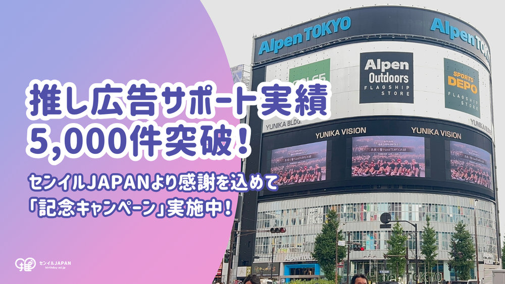 センイルJAPANは2025年8月をもちまして、推し広告®︎(センイル / 応援広告)のサポート実績が累計5,000件を突破いたしました!