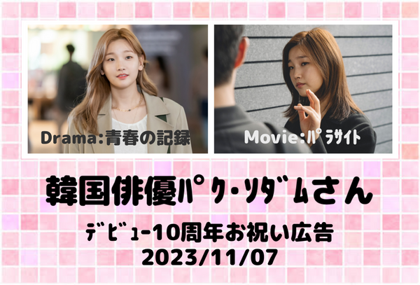 很高興見到你。我的名字叫Damsmilejapan,他支持韓國演員帕克·蘇杜姆(Park Sodum)。感謝您訪問10週年慶典廣告項目。